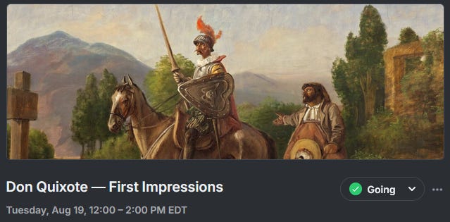 Our first discussion on Don Quixote takes place TOMORROW, August 19 at 12pm EST!