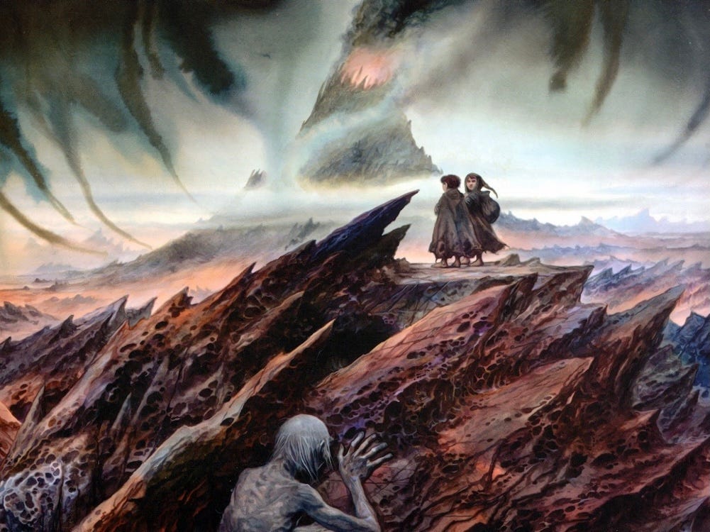 After passing into Mordor and escaping the orc tower at Cirith Ungol, Frodo and Sam are physically and spiritually depleted. Pausing for a moment, semi-conscious from exhaustion, Sam looks up at a distant star in the night sky. One of the most quoted and uplifting passages of the entire novel follows: