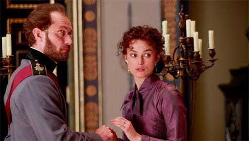 Anna Karenina focuses on three couples, all of which attempt some sort of married relationship. The first is the titular couple: Anna Karenina and her husband Alexei Alexandrovich Karenin. Where Anna is a vibrant, talented, beautiful woman, Alexei Alexandrovich is a textbook case of having “married up:” he is boring, sarcastic and passive, even in his relationship with his wife.